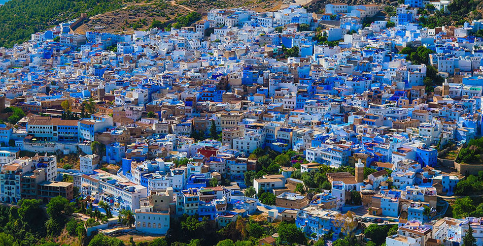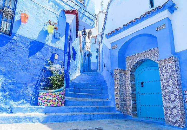 Chefchaouen situa-se nas Montanhas Rif e é um dos destinos mais pitorescos de Marrocos devido às suas famosas paredes em tons de azul. Crê-se que estas, tiveram origem na cultura judaica, em que o azul representa o céu, o que por sua vez lembra as pessoas que faleceram e Deus.